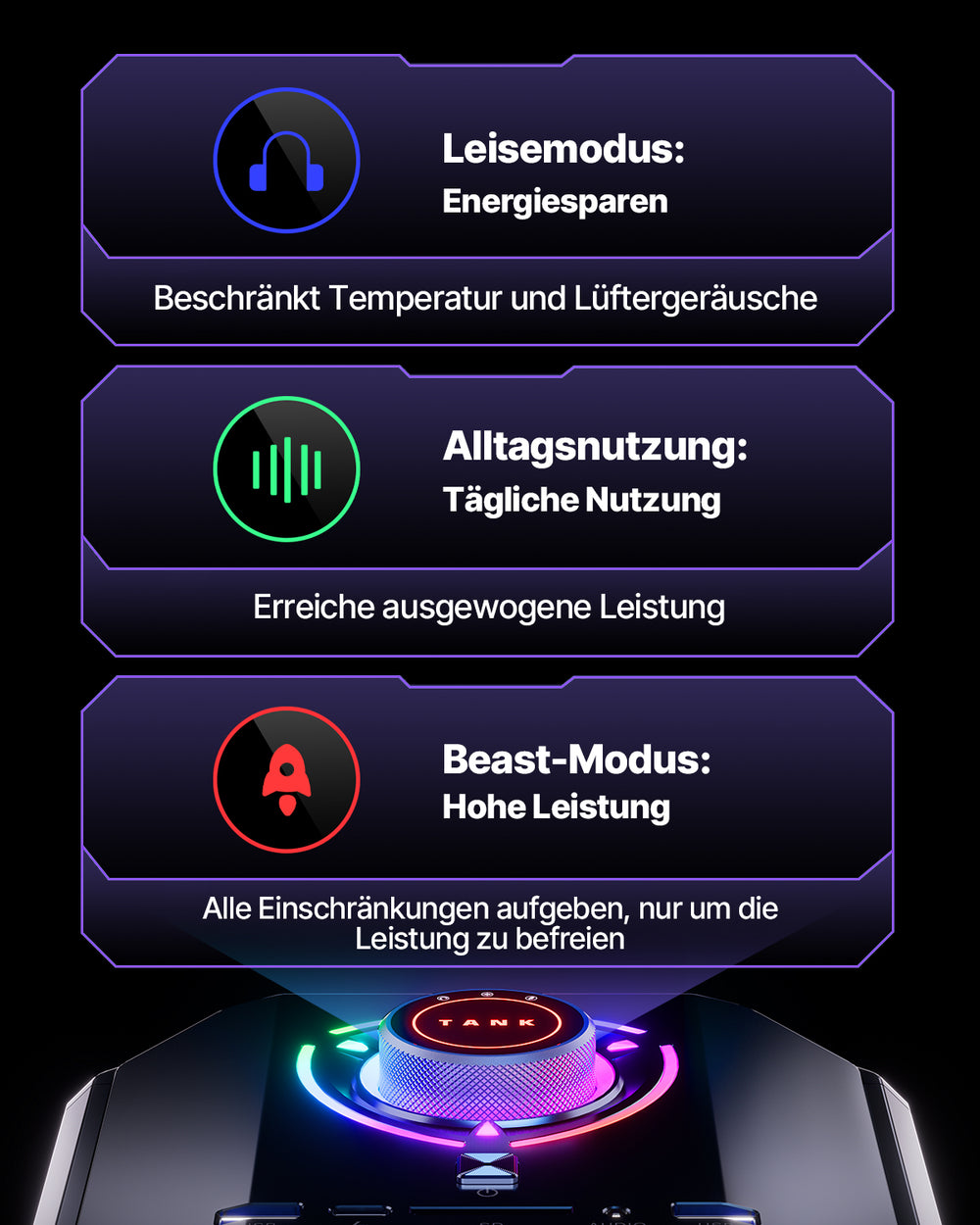 10 M/100 M/1000 M/2,5 Gbps adaptiv RJ45 Gigabit Ethernet*2 USB 3.2 Gen 2 Typ-A*3 USB 3.2 Gen 1 Typ-A*3 USB 4.0 Typ-C*1 (8K@60Hz) DC-Eingangsbuchse*1 HDMI 2.0*3 (4K@60Hz) DP 2.0*3 (8K@60Hz) 3,5-mm-Audiobuchse*2 |