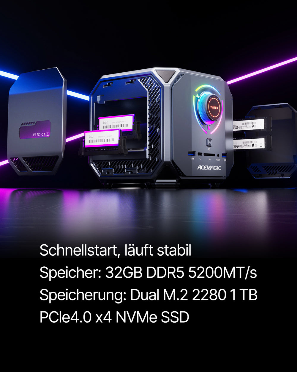 | RAM | DDR5 5200 MHz Dual Channel, DDR5 SO-DIMM-Steckplätze*2, bis zu 32 GB |