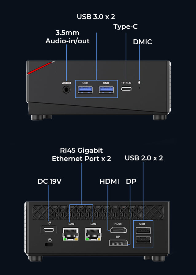 ACEMAGIC AM06 Pro ist ein leistungsstarker Minicomputer, der mit einem AMD Ryzen 7 7730U/5700U/5800U/5825U-Prozessor ausgestattet ist. Er eignet sich gut für Spiele und verfügt über 32 GB DDR4-Speicher und eine 1 TB SSD (aufrüstbar auf maximal 2 TB). Er unterstützt dreifache 4K@60Hz-Displayausgabe über HDMI-, USB-C- und DP-Schnittstellen. Darüber hinaus verfügt er über zwei Ethernet-Anschlüsse und WiFi 6 und läuft unter dem Betriebssystem Windows 11.