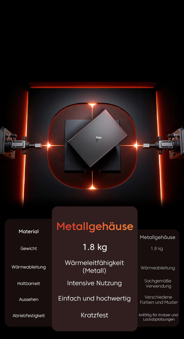 | Speicherkonfiguration | M.2 2280 NVME*2, 512 GB, bis zu 4 TB |